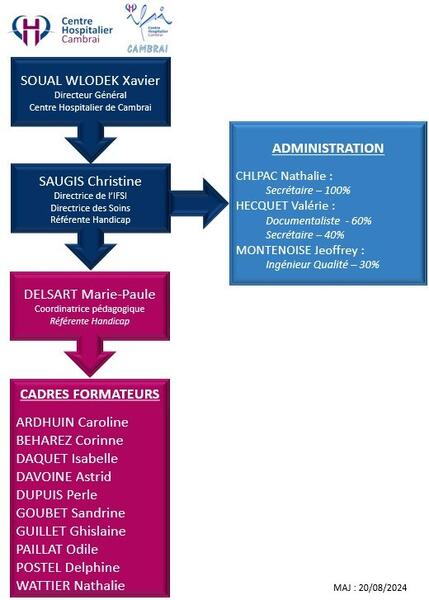L'ÉQUIPE Sous la responsabilité de la Directrice de l’institut, une équipe administrative et pédagogique vous accompagne tout au long de la formation. Organigramme