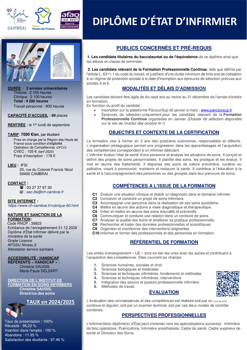 Le partenariat avec l’Université Polytechnique des Hauts de France (UPHF) permet d’obtenir le grade de Licence. 180 ECTS (European Credit Transfer System) sont nécessaires pour obtenir le diplôme d’État.