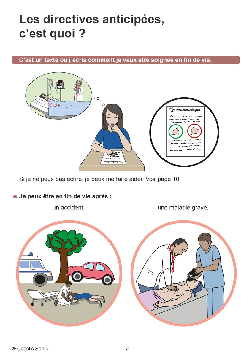 Les directives anticipées sont un document écrit, daté et signé, dans lequel une personne exprime à l’avance ses souhaits concernant les soins médicaux en fin de vie, pour le cas où elle ne serait plus en capacité de s’exprimer (coma, maladie grave, accident, troubles cognitifs, etc.)
