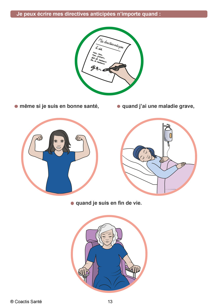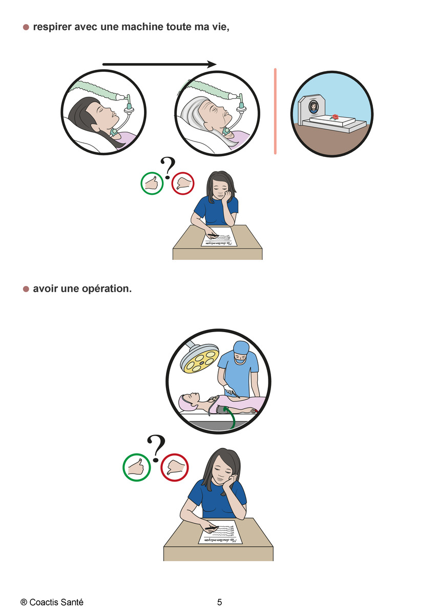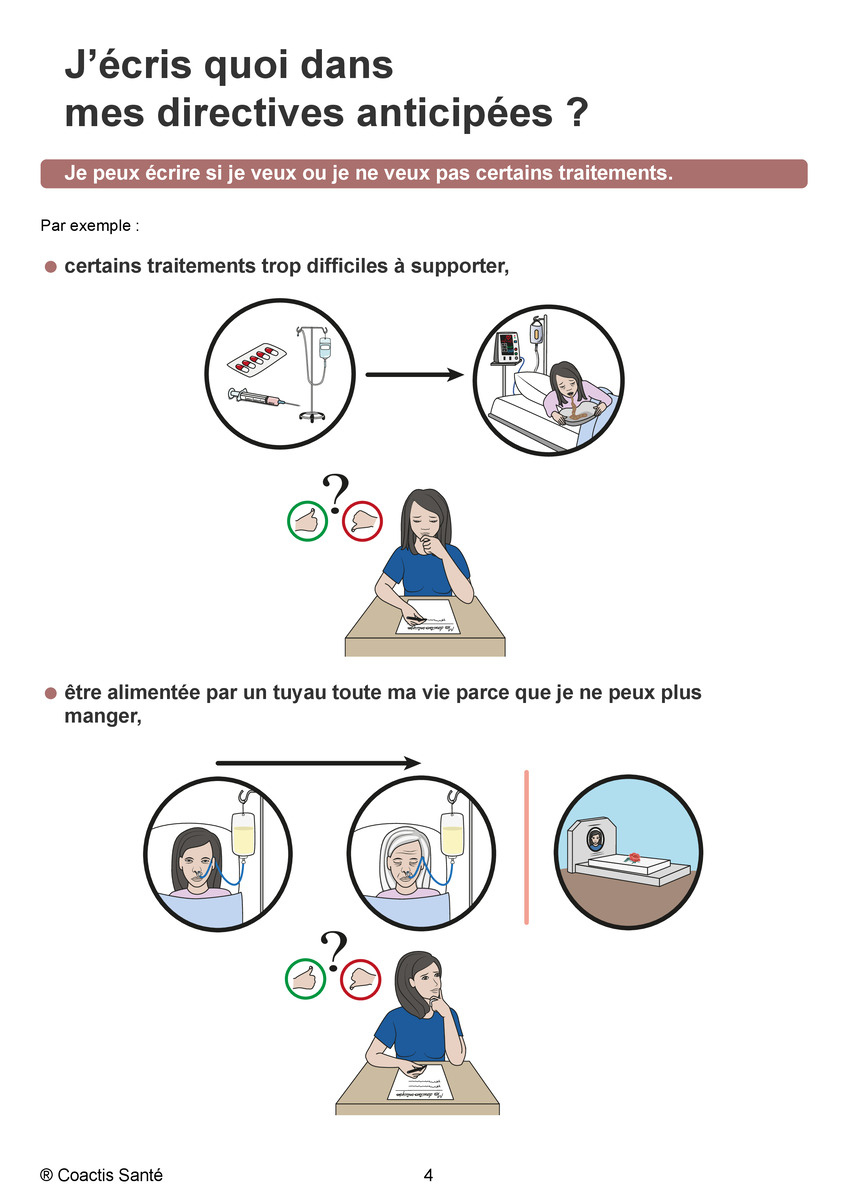 - Vos souhaits spécifiques selon divers scénarios : coma réversible, état végétatif permanent, maladie évolutive…