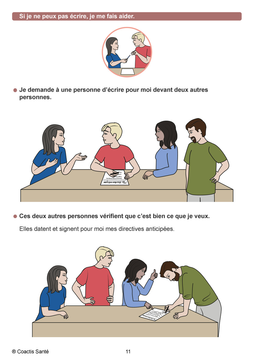 - Si la personne ne peut pas écrire, deux témoins doivent attester que le document exprime sa volonté.