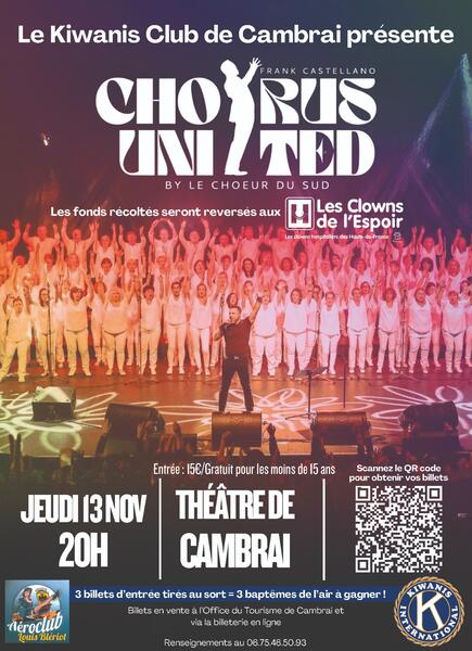 Le Kiwanis Club de Cambrai vous propose un concert de Chorus United le Jeudi 13 Novembre au Théâtre de Cambrai.